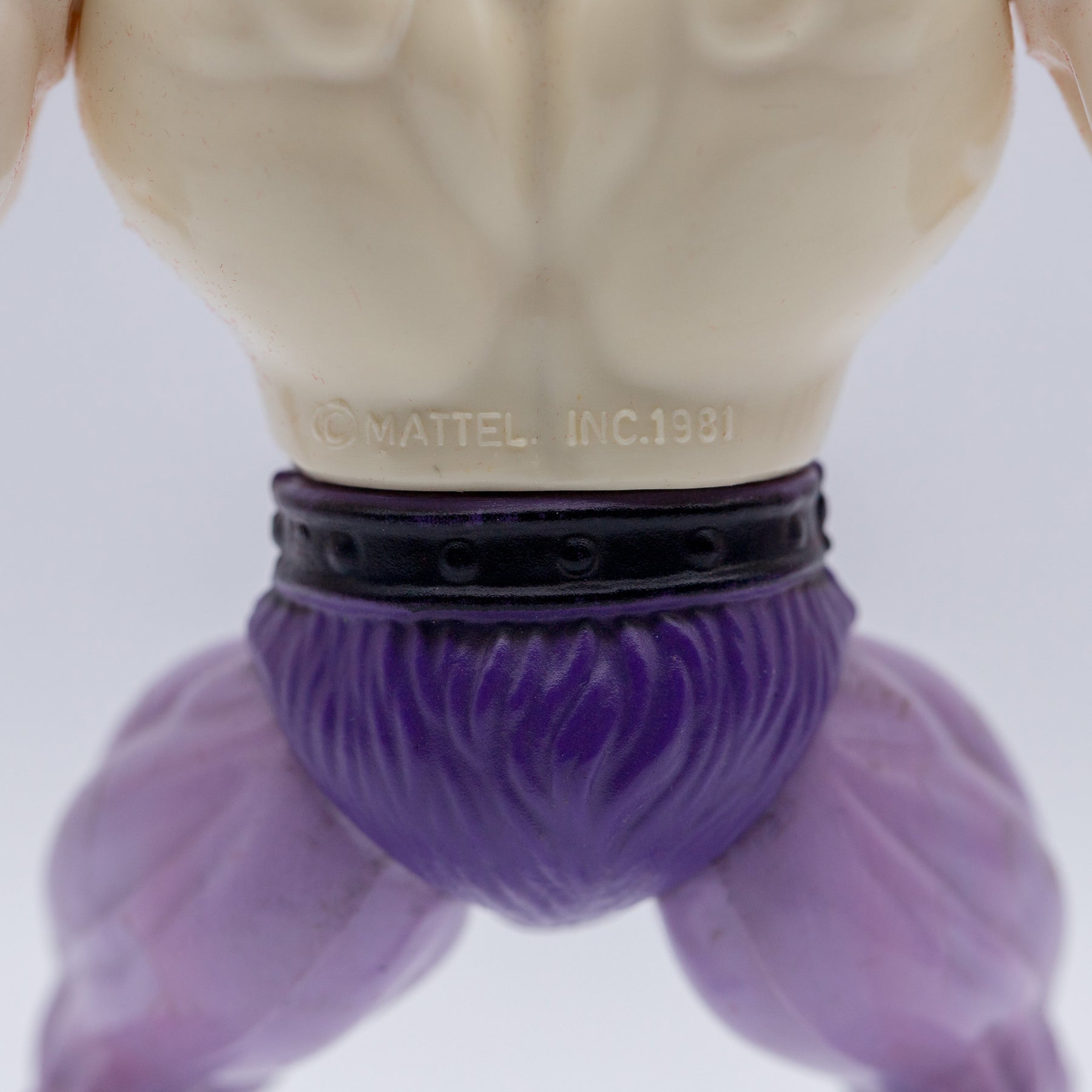 The figure is marked © MATTEL, INC. 1981, while the sword is marked TAIWAN with a batch number 30, produced using the Battle Armor Taiwan He-Man sword mold. The soft head resembles the Taiwan sculpt but is unmarked beneath the neck.